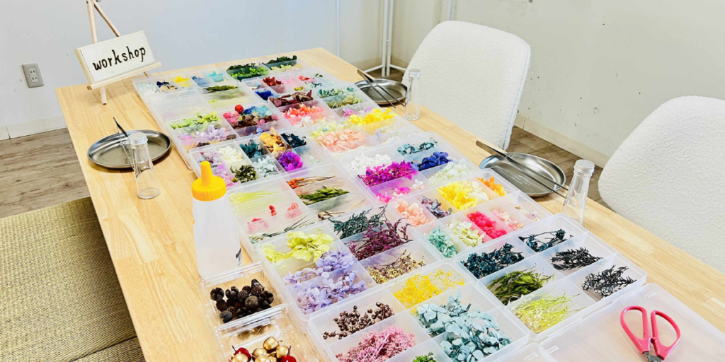 この地道な活動から、ハーバリウムやサンドジェルキャンドルといった、色鮮やかな花雑貨へと表現の幅を広げ、徐々に須崎市を中心としたマルシェやイベントへの出展が増えていきました。