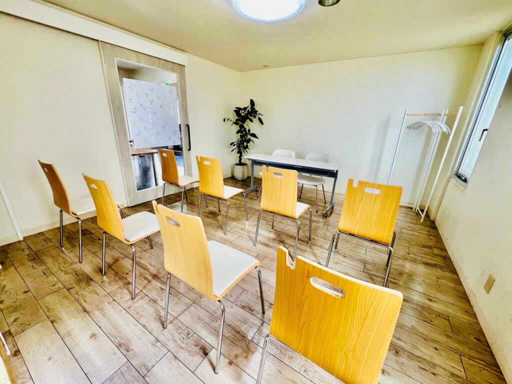 お部屋の大きさは11m²(約7畳)。最大10人(着席時)まで入れます。ご予約優先でお貸ししています。